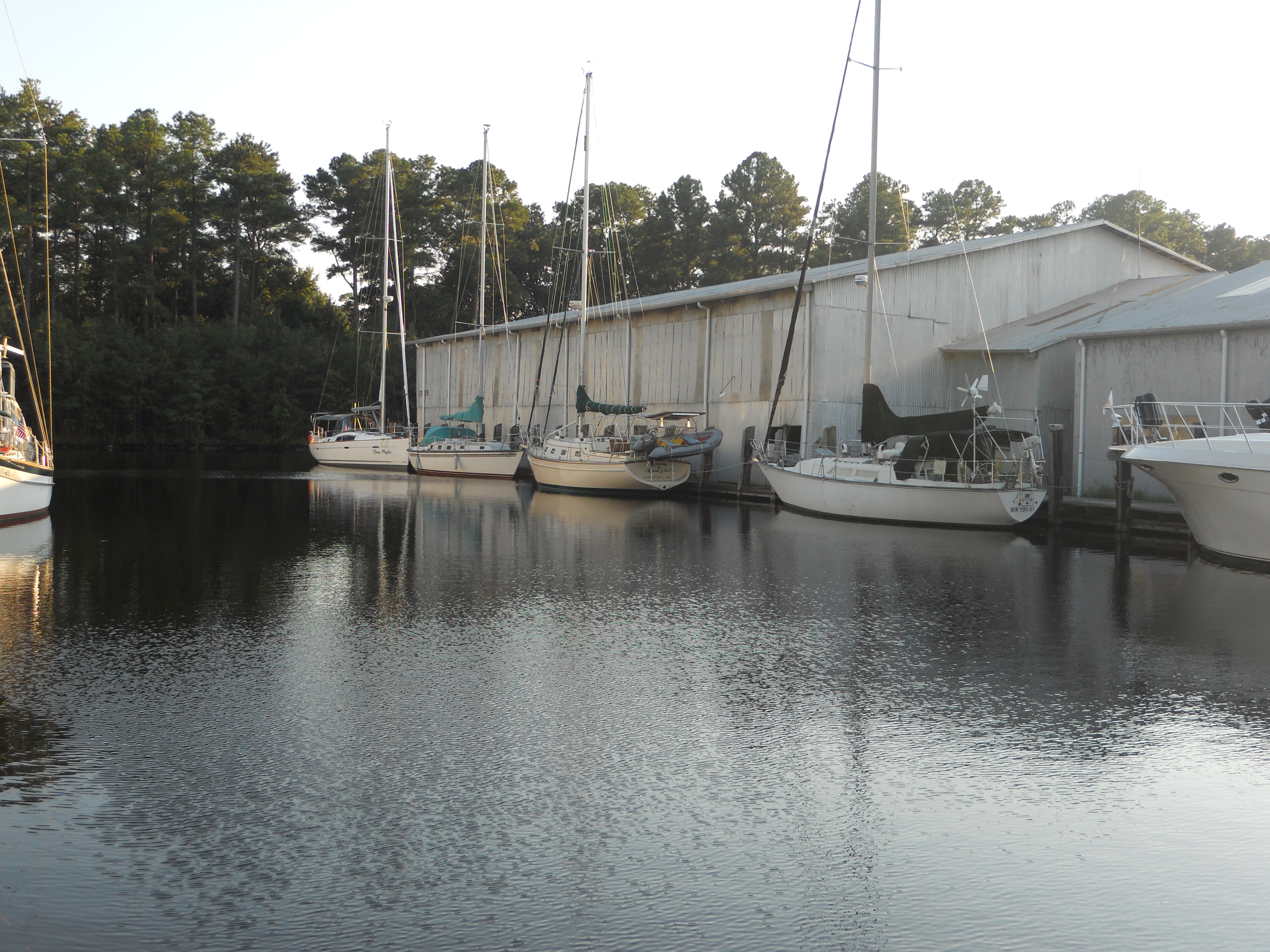Our goal is to get past the Gilmore Bridge which we hear will be closed for repair early October. We don’t want to get hung up by that so we schedule a stop at the Atlantic Yacht Basin in Chesapeake City, VA. Randy wants to have a double anchor roller put on the front of the boat and a new fuel filter on the engine. It is recommended to us by our friend, Doug Wilkie, as a good place to get work done. We will be here until Saturday when we will be taking our rental car the five hour drive to Pinehurst Golf Resort & Spa for Lee’s Birthday.