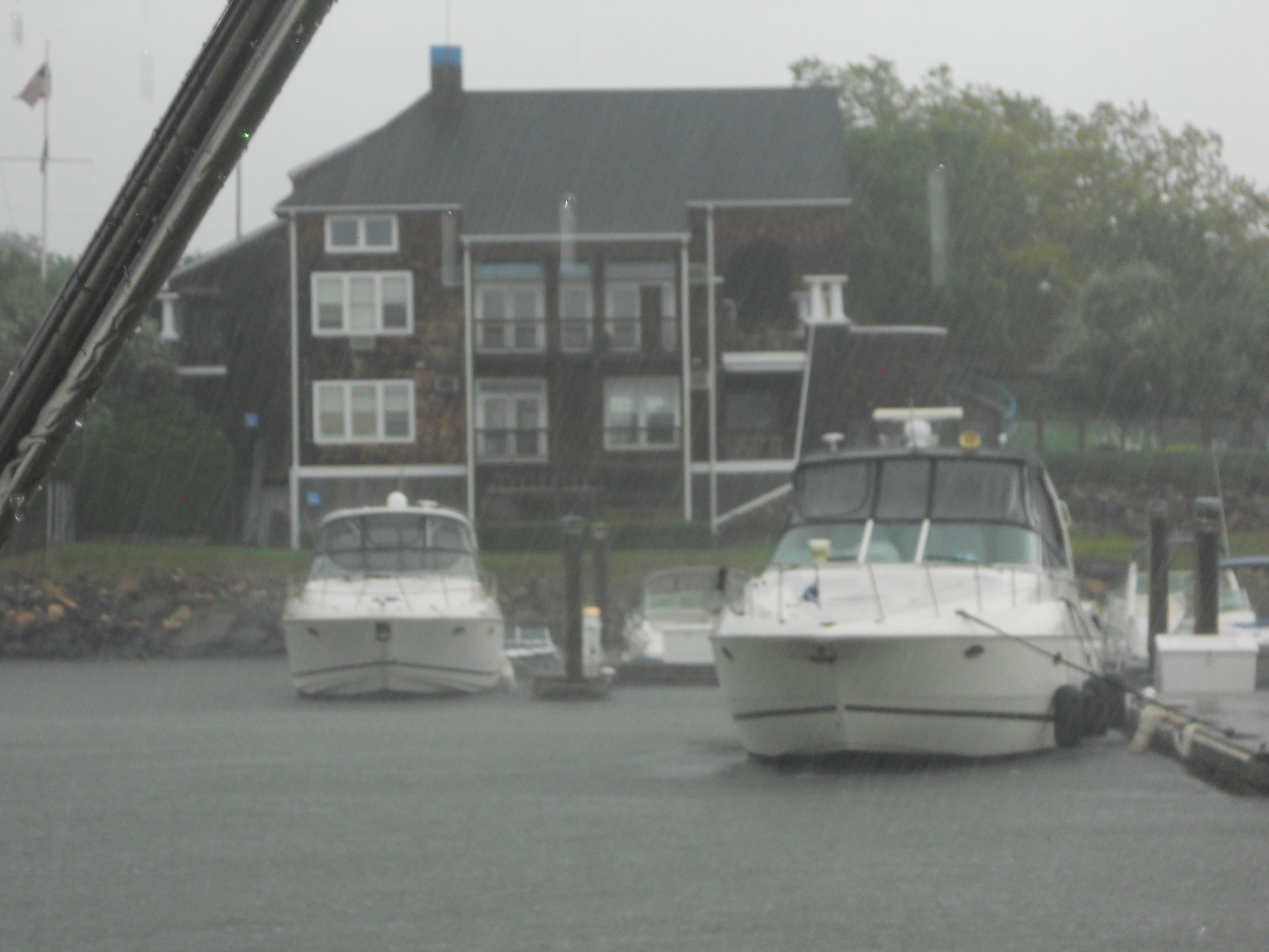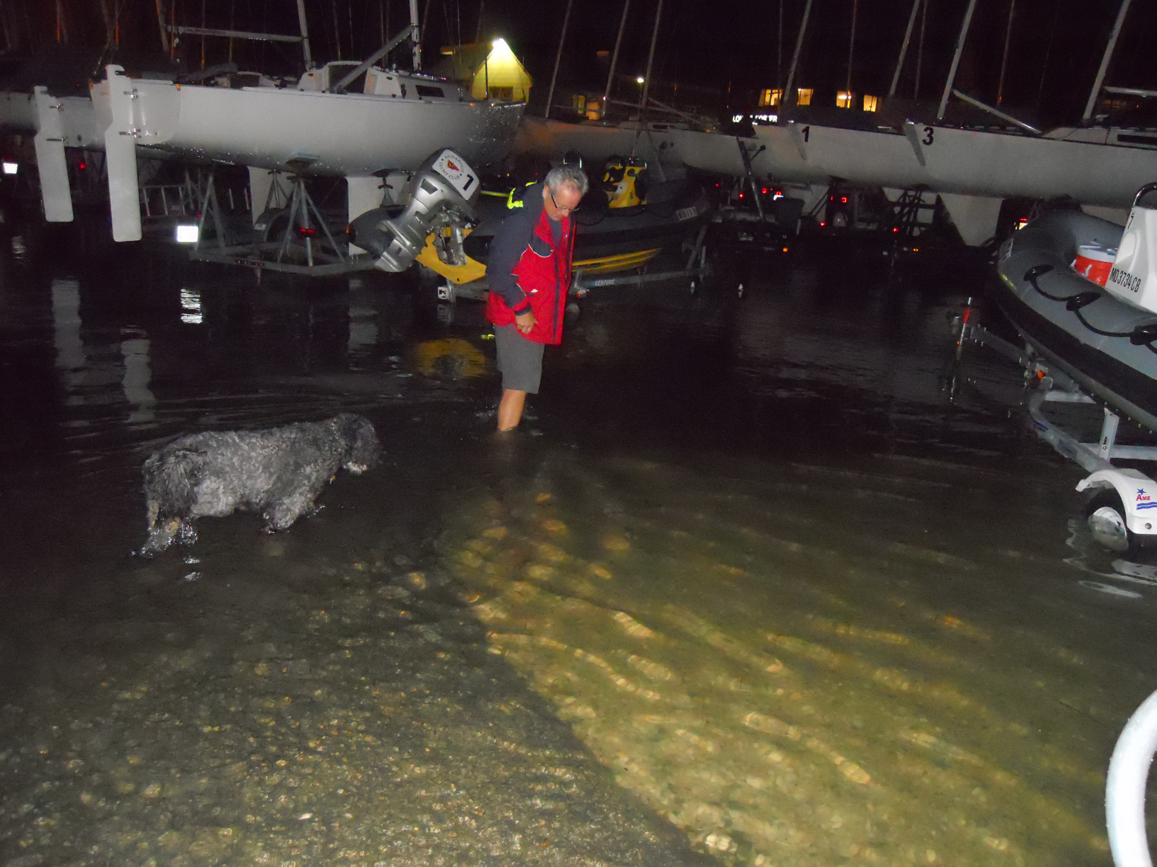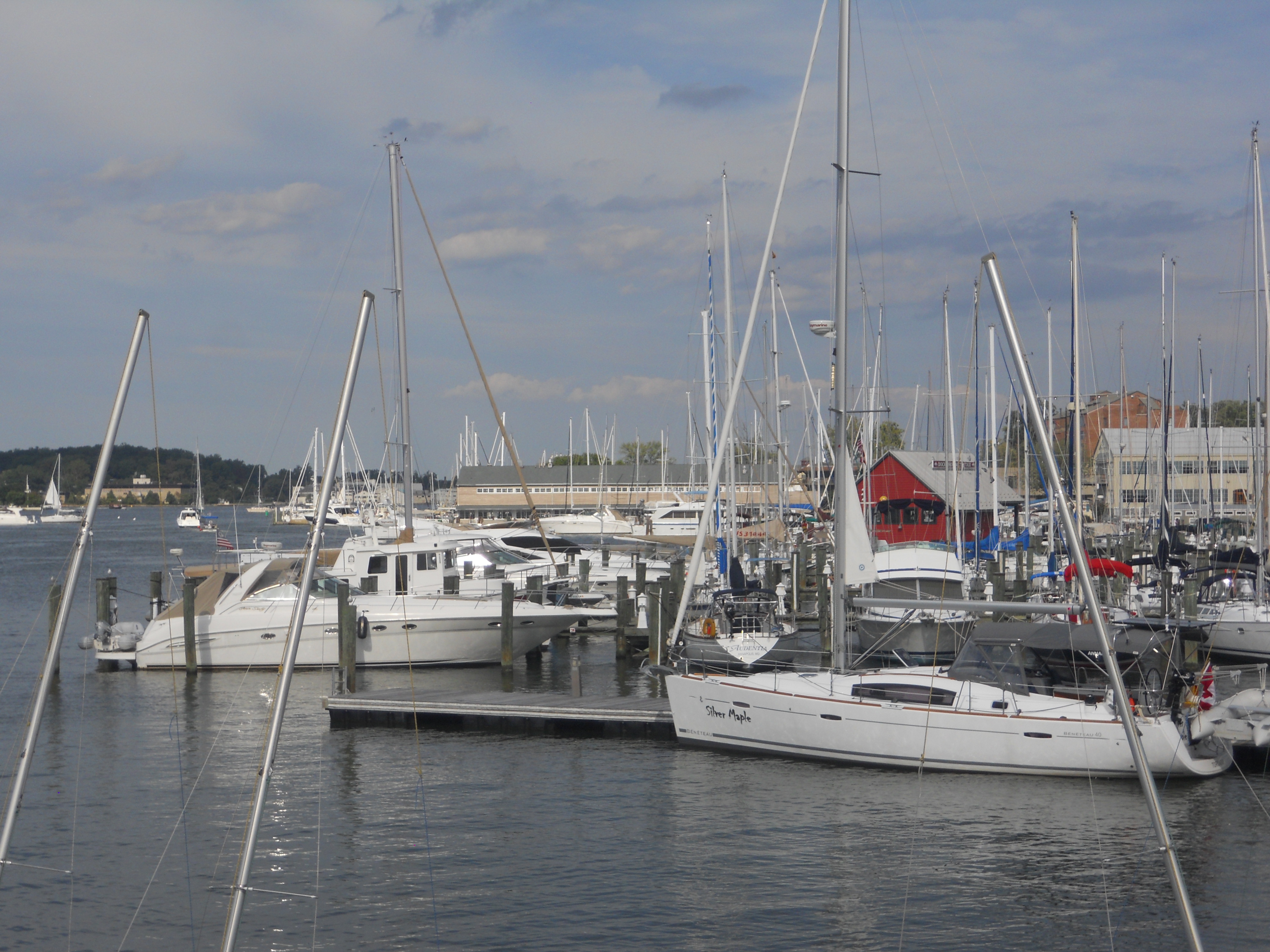 Overnight the winds pick-up and some nasty weather starts to move into Annapolis. Regardless, the Beneteau dealer has his repair guy at the boat first thing to repair the bilge pump (it was a faulty check-valve). Carla, who Lee worked with at KPMG let’s Lee know that she, her husband, John, and Tracy will not be able to make it to Annapolis from DC since the weather is so bad (bummer!). In Annapolis, the heavy winds and rain, and high tide flood the city streets and the marina yard. We are wading up to our knees by the end of the day to get off the dock.