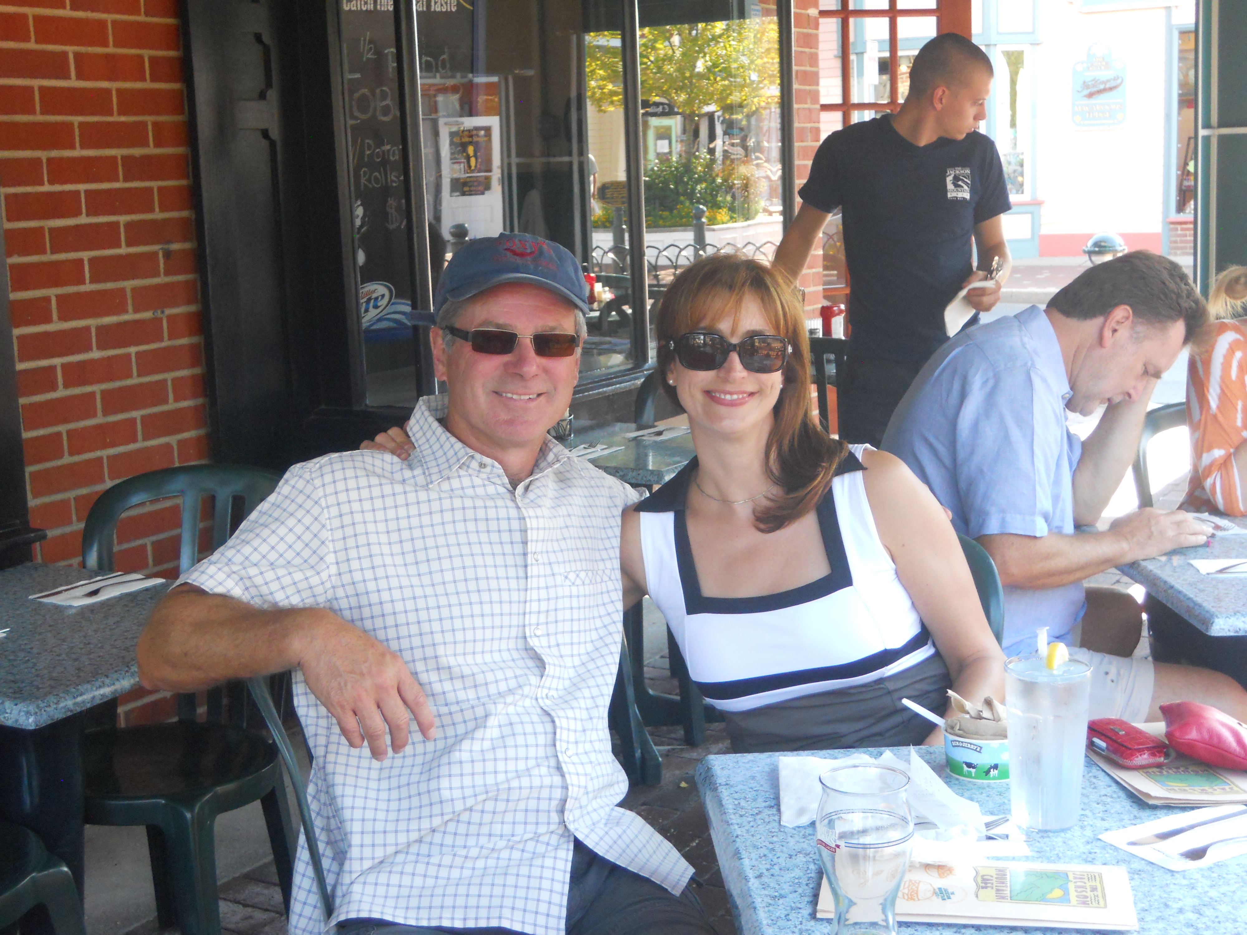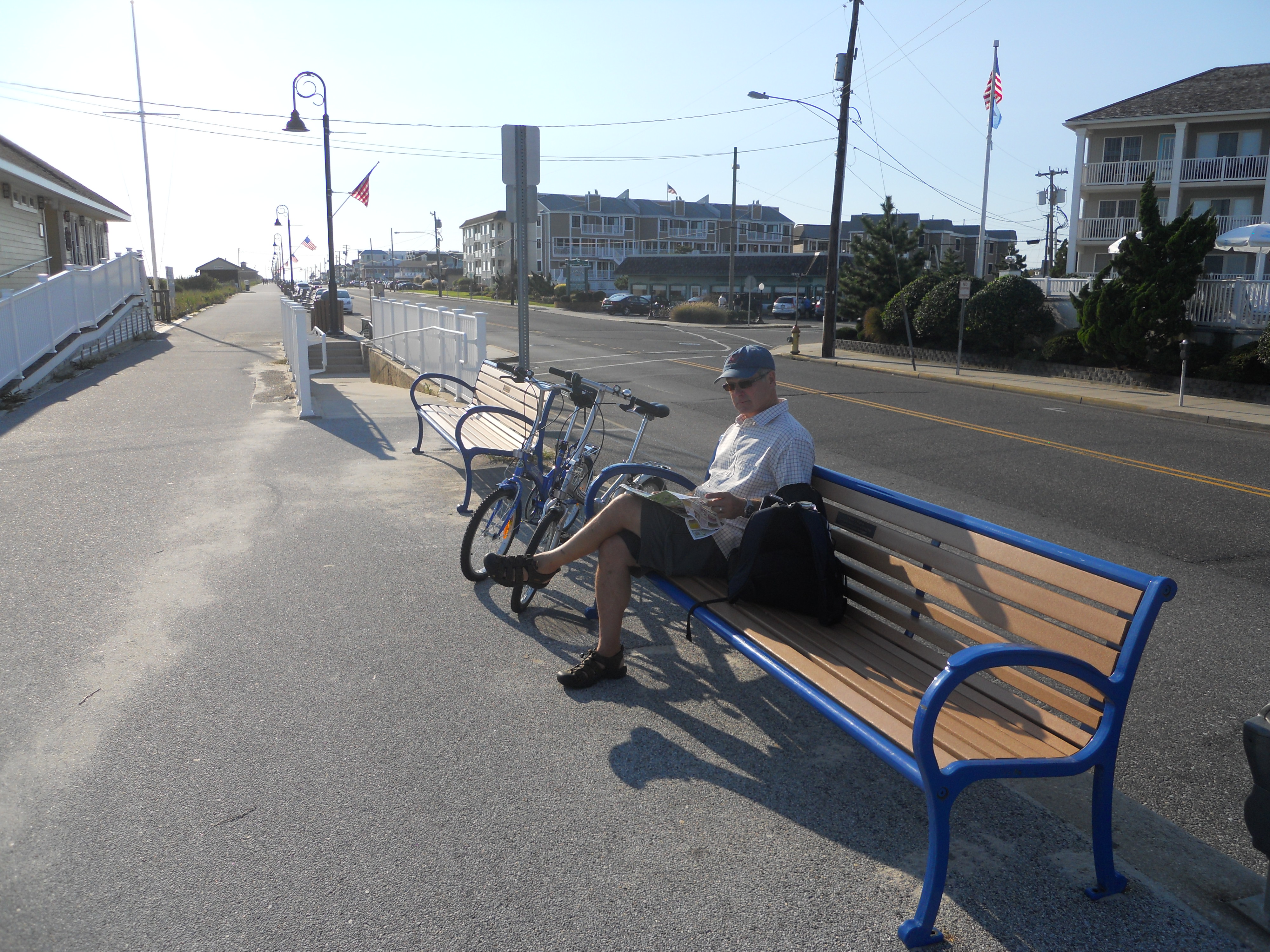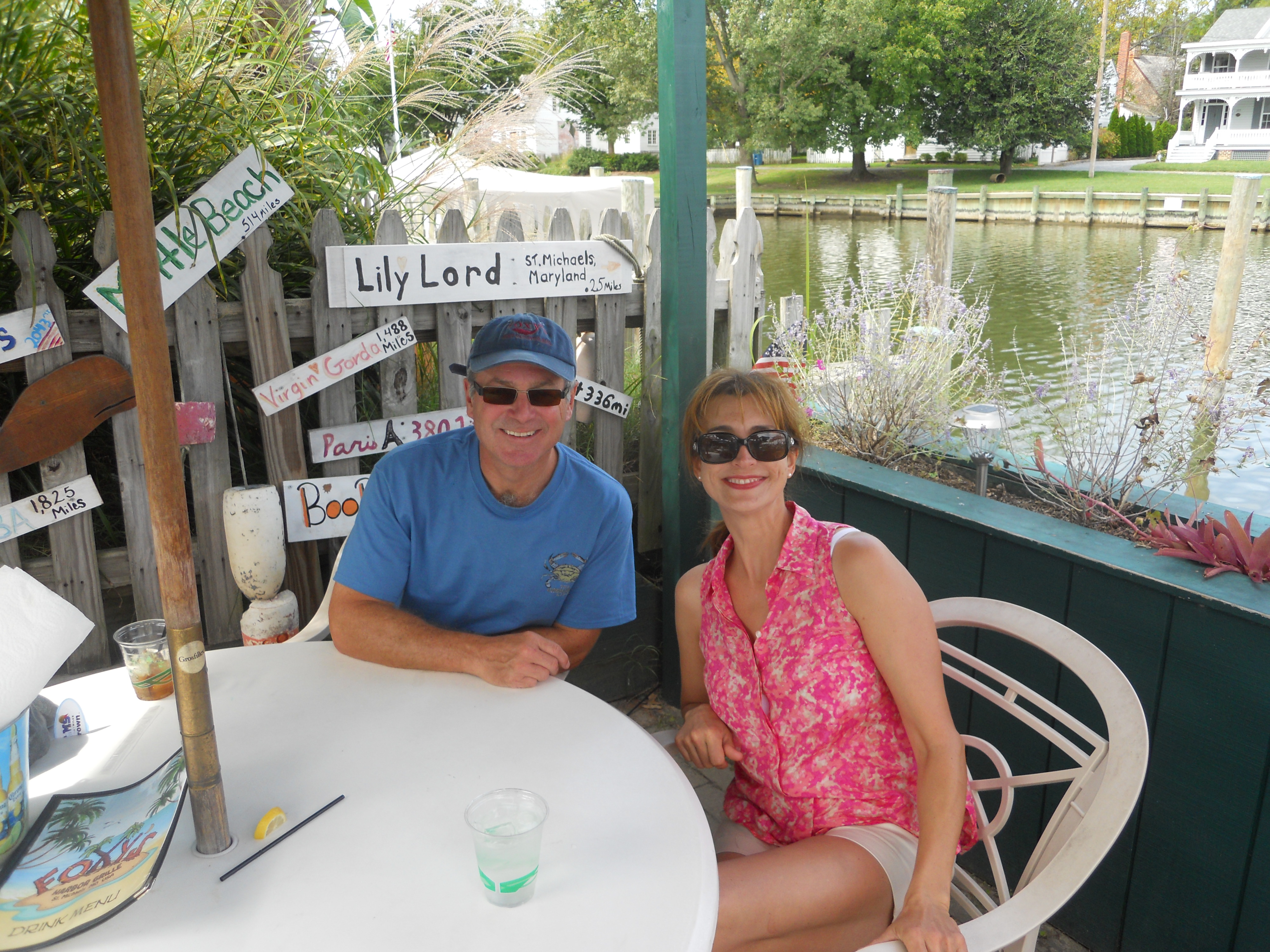 St. Michaels definitely lives up to the claims that it is the nicest place to visit on the Chesapeake. Lovely harbour. And, the Harbor Inn and Marina where we stay has a great pool and free loaner bicycles (saves us digging our’s out of the boat locker). We have a rest at the pool once we are settled. Lee is still hobbling around with her sore ankle, but it feels better on the bike than walking so we ride into town to have dinner at a great restaurant called the Town Dock down by the water. More crab cakes — Lee can’t help herself!