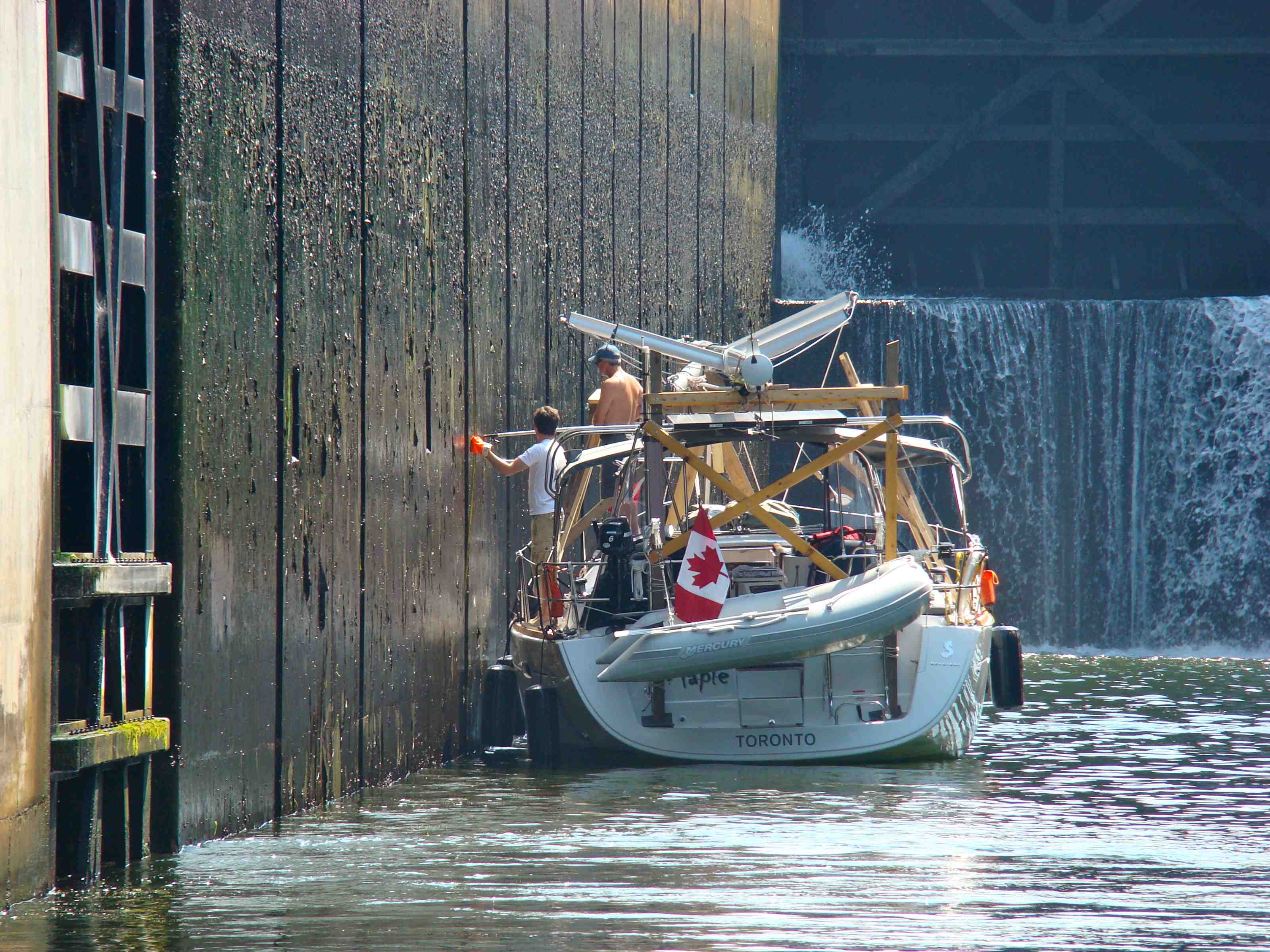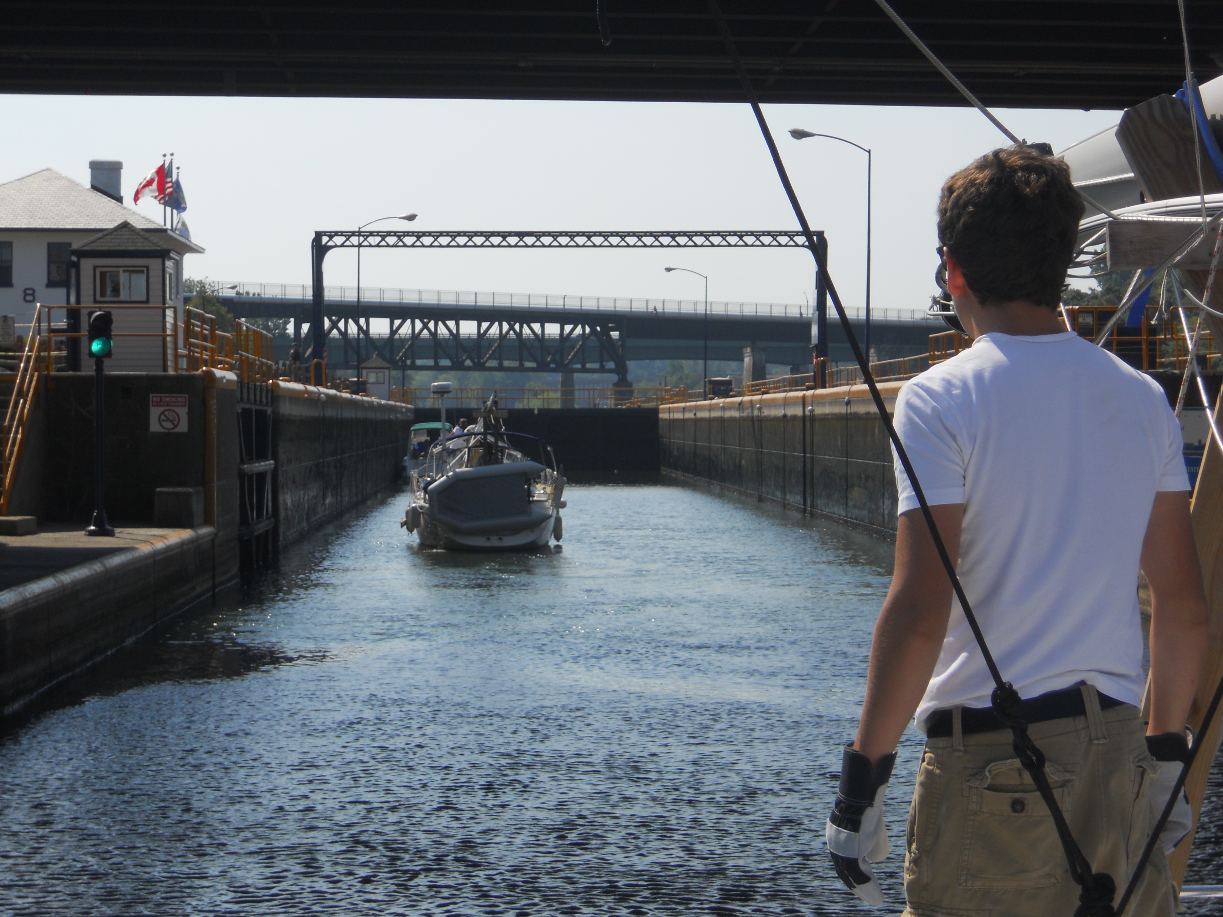 In this first part of the ICW, we have to wait for a few bridges as they open and close. Some only open at certain times during the day, so we have to time arrival. We also do one last lock. It’s only a 3ft rise though — easy compared to what we’ve done on the Erie Canal. Piece of cake!