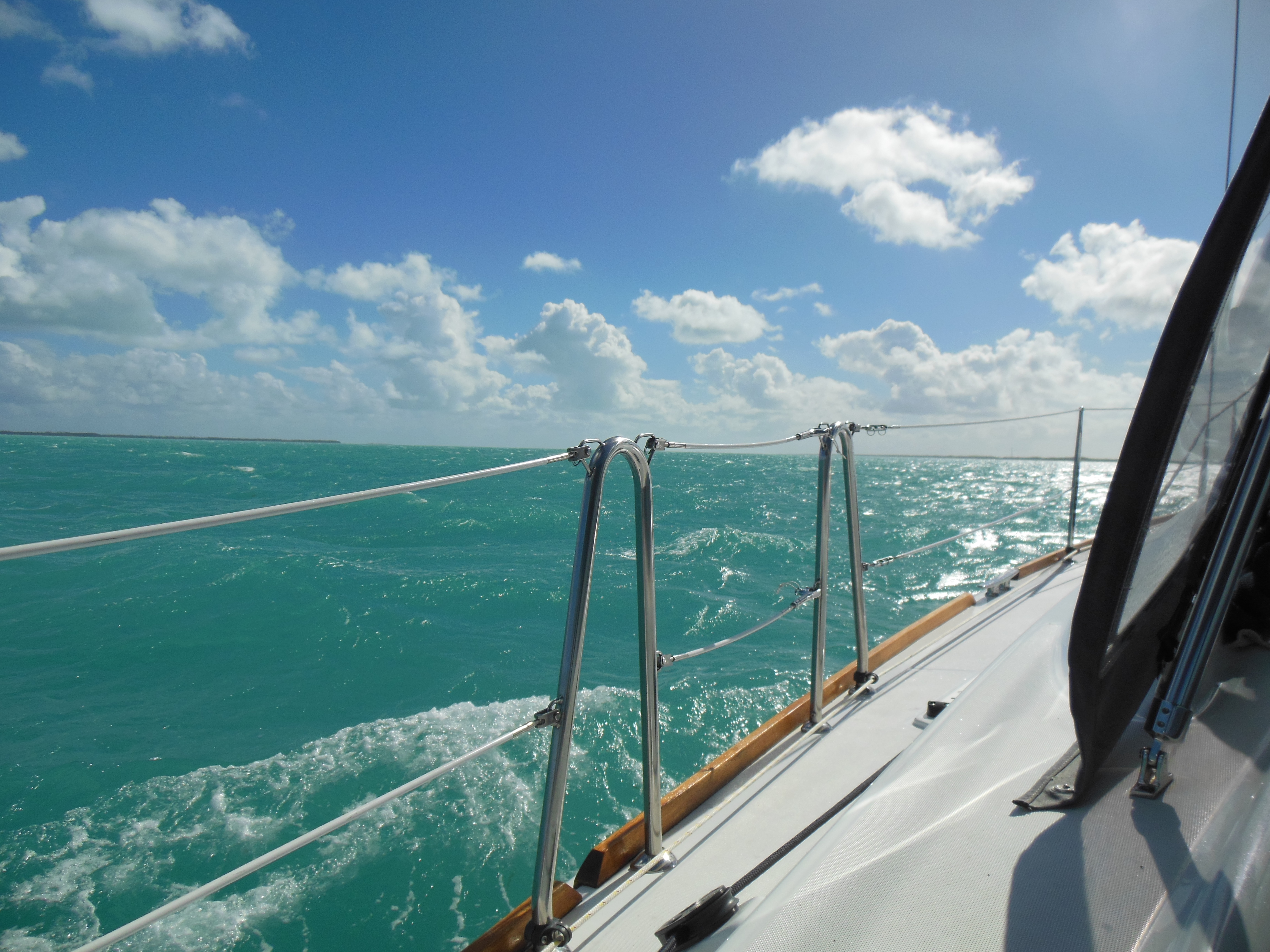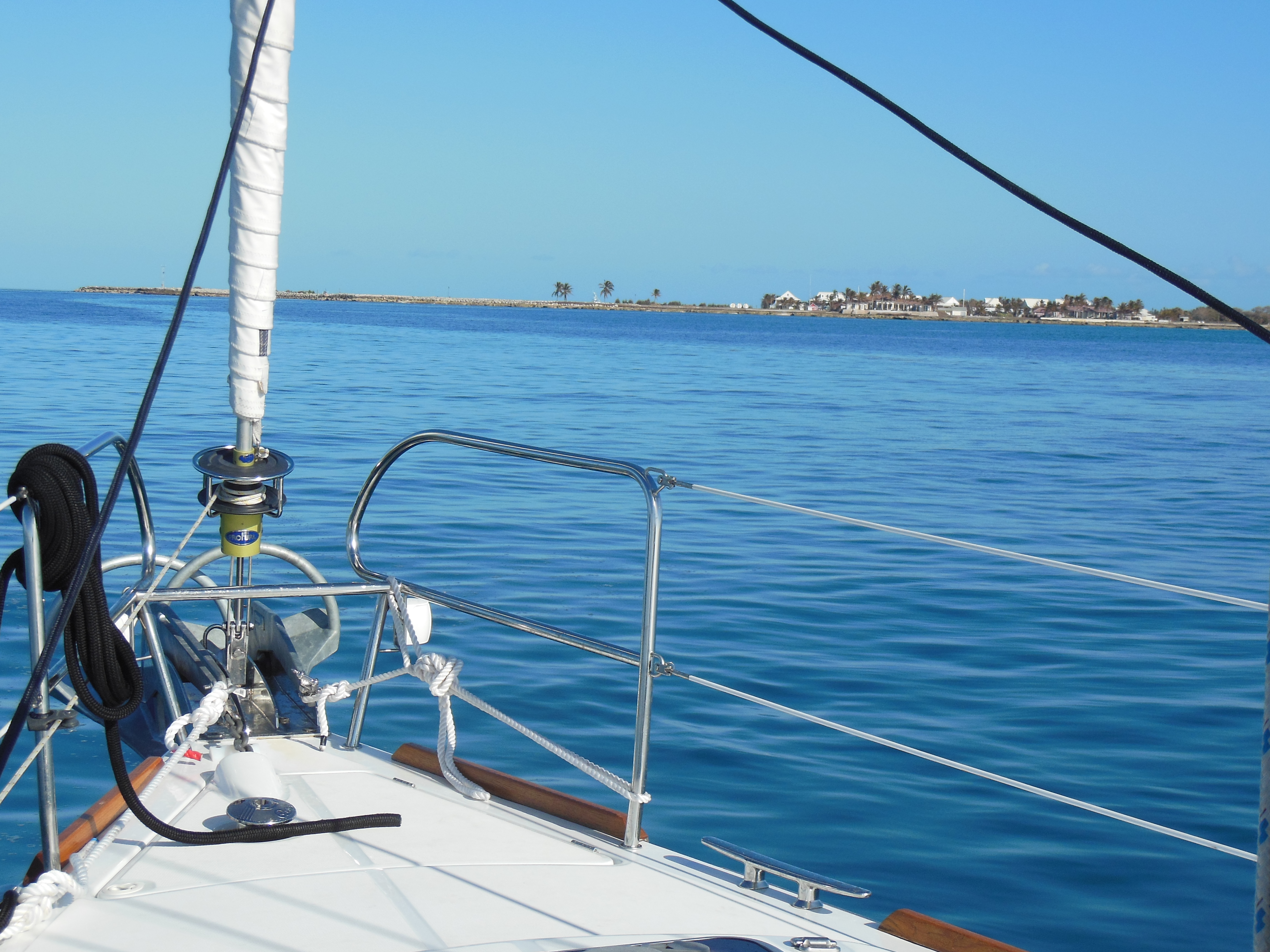 When we leave Spanish Cay, the wind is blowing up to 30 knots at the dock. But, we are determined to move on. With the help of the manager and a friend of his, and some excellent piloting from Randy, we are able to get out of the slip unscathed.