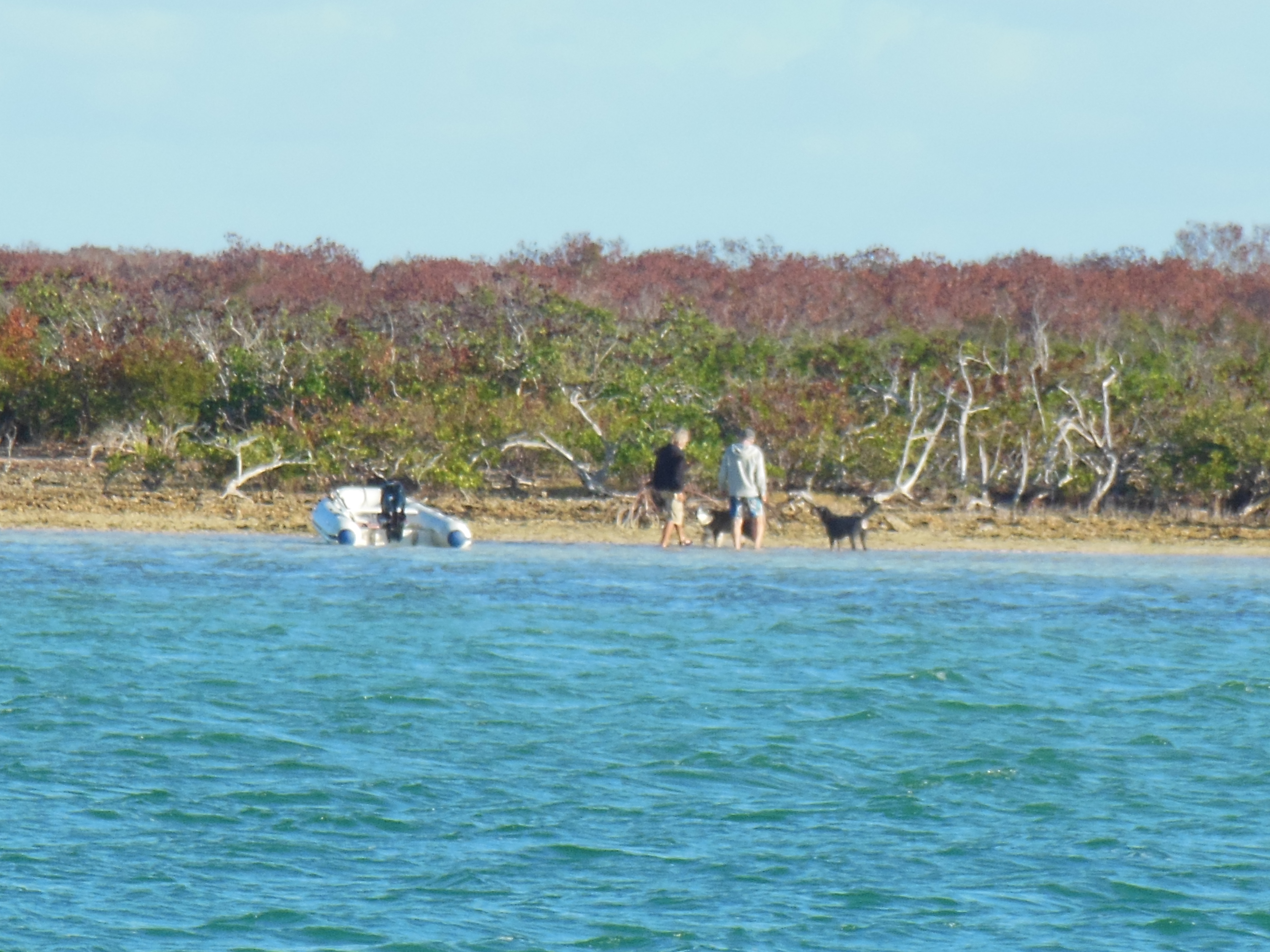 When we arrive at Great Sale Cay, the island looks pretty much dead. All the vegetation is brown from the salt water damage it received when hurricane Sandy went through. This seems to the case across what we’ve seen in the Bahamas so far. Very sad. But the anchorage at Great Sale Cay is quiet and a close dingy ride for Leo to go onshore. He enjoys having Eli (dog on Promises Kept) to play with, although Eli seems mostly disinterested.