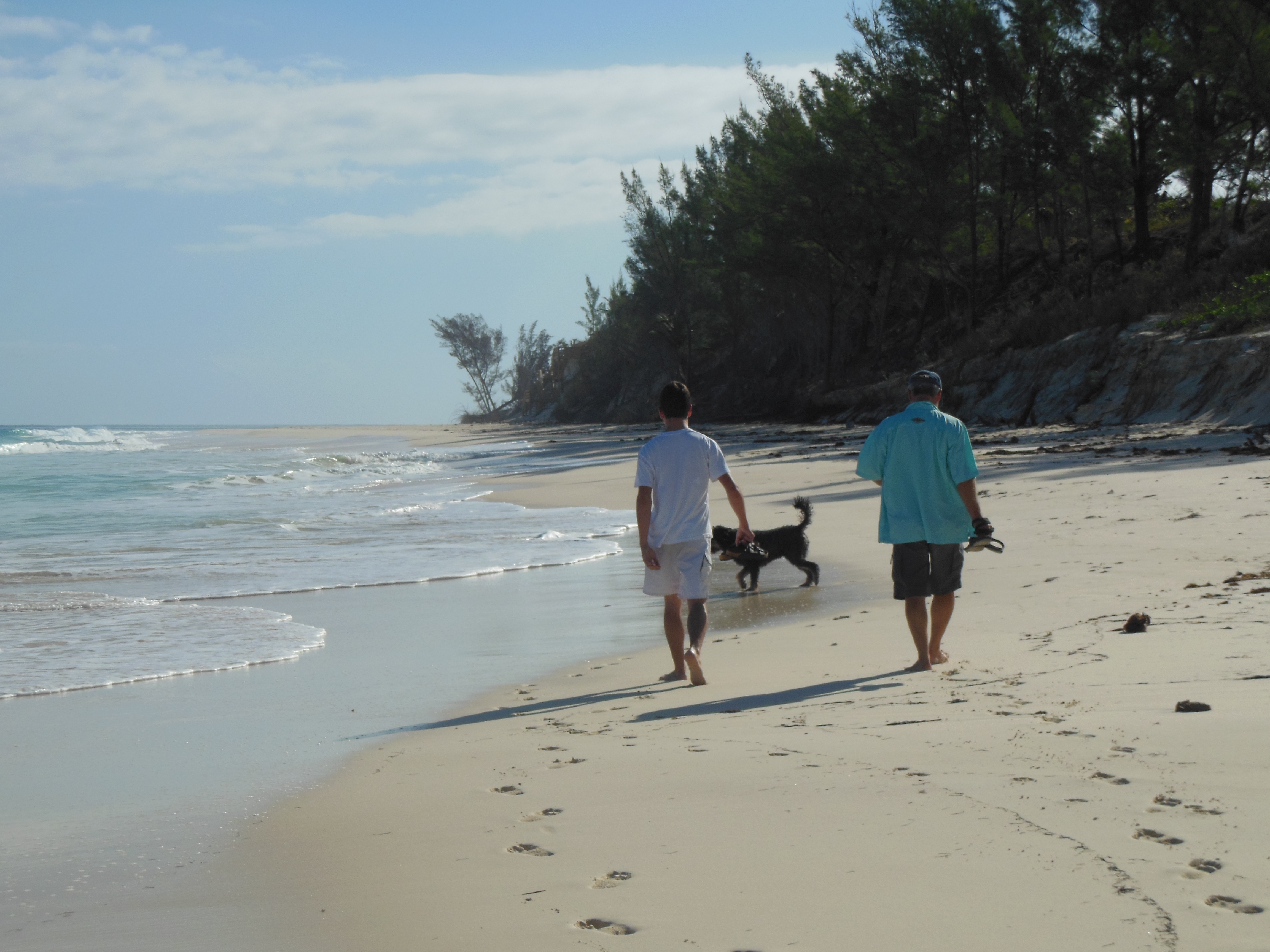 Leo and Randy go ashore for Leo’s morning walk at Great Guana Cay
