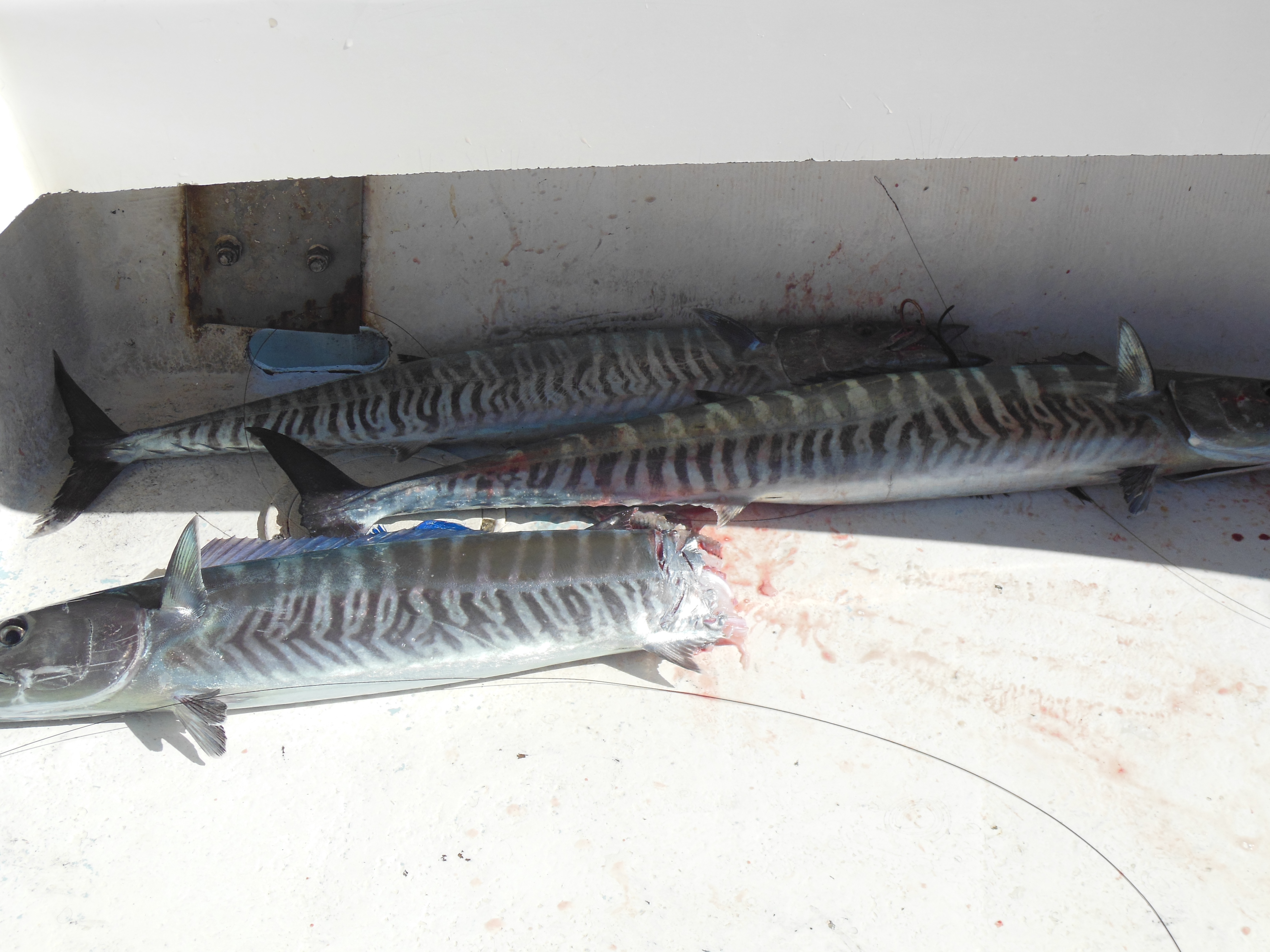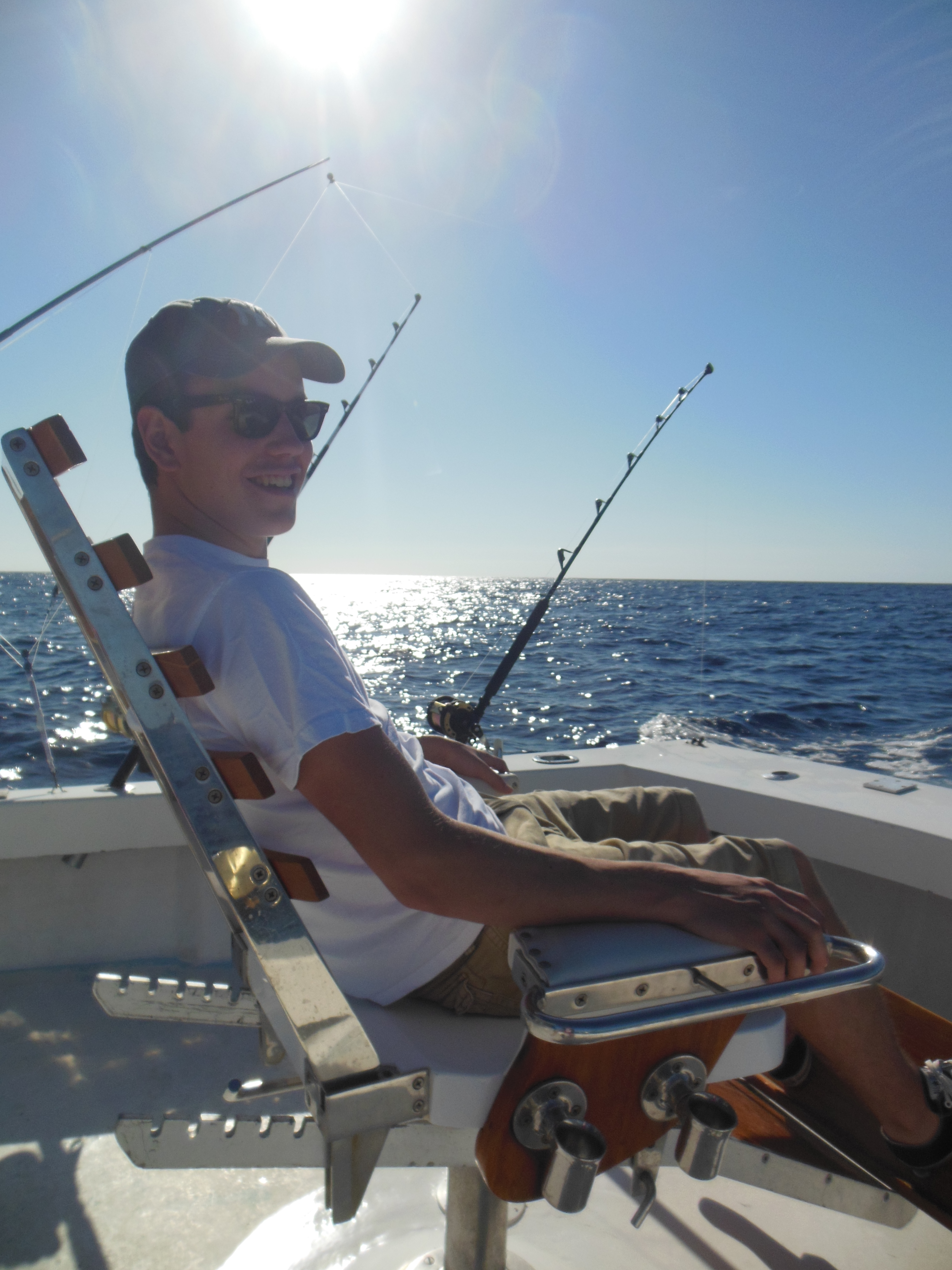 We land 2 and a half-fish called Wahoo. Half of Lee’s gets eaten by something else as she reels it in. Justin said it was probably a barracuda. Should have reeled it in faster!