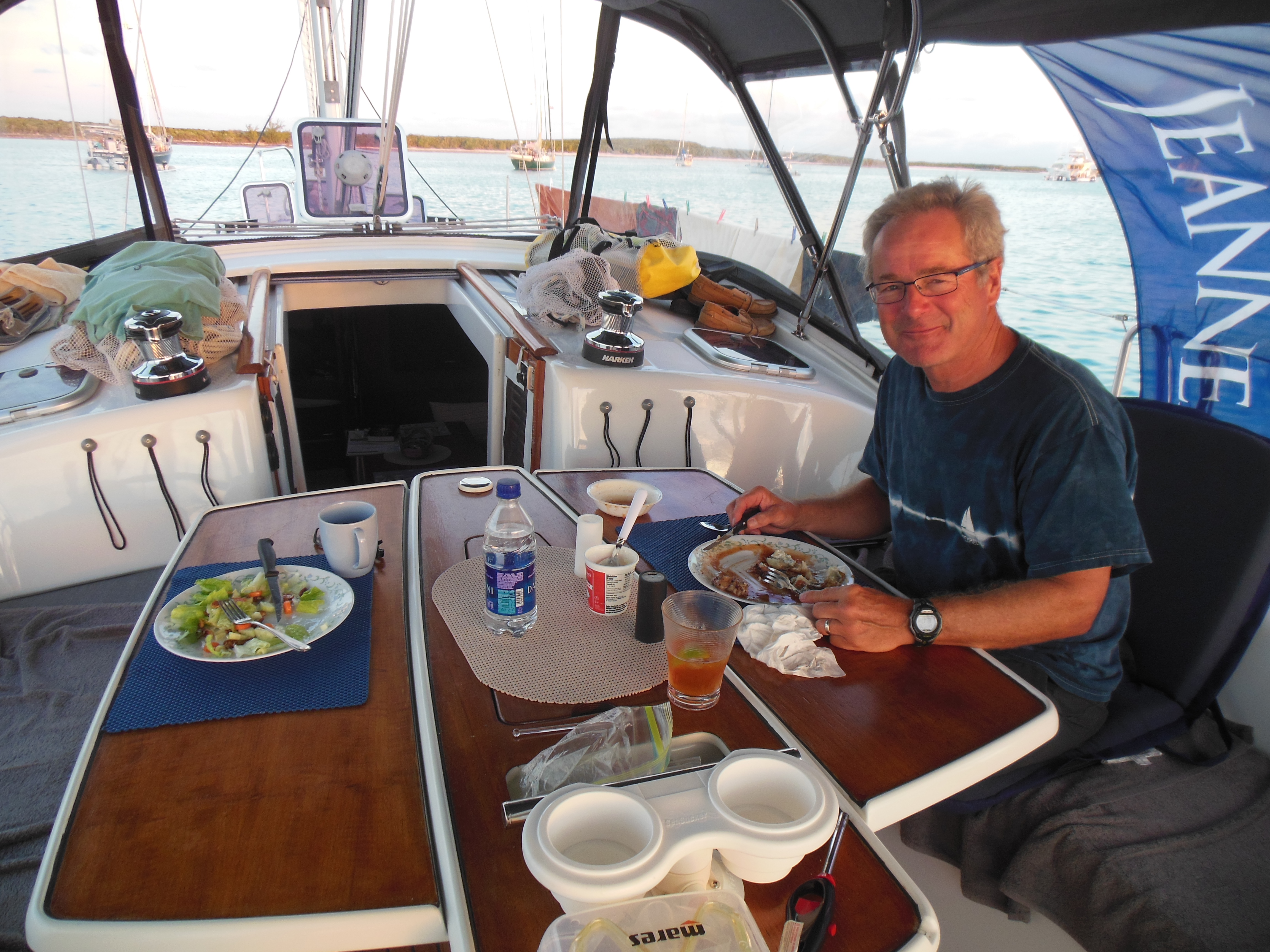 Well, our plans to move to Marsh Harbour last week had to be adjusted. The weather has been unsettled for days, so we have been forced to stay here in Hopetown — not really a hardship since it’s a gorgeous place with a lovely beach and some nice restaurants. And, we’ve been meeting lots of other great cruisers who are also staying put and waiting for good weather. The northern migration has definitely started. Being forced to hole up this week, we have had time to work on preparing the boat to put into storage for the season — in addition to having fun with our new friends.