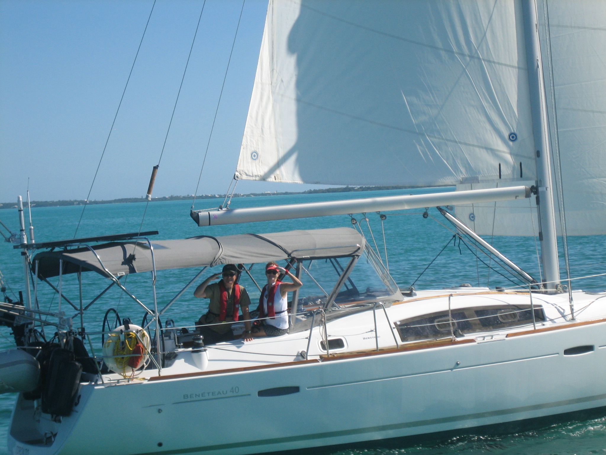 At the beach at Wardrick Wells with Silver Maple moored in the distance