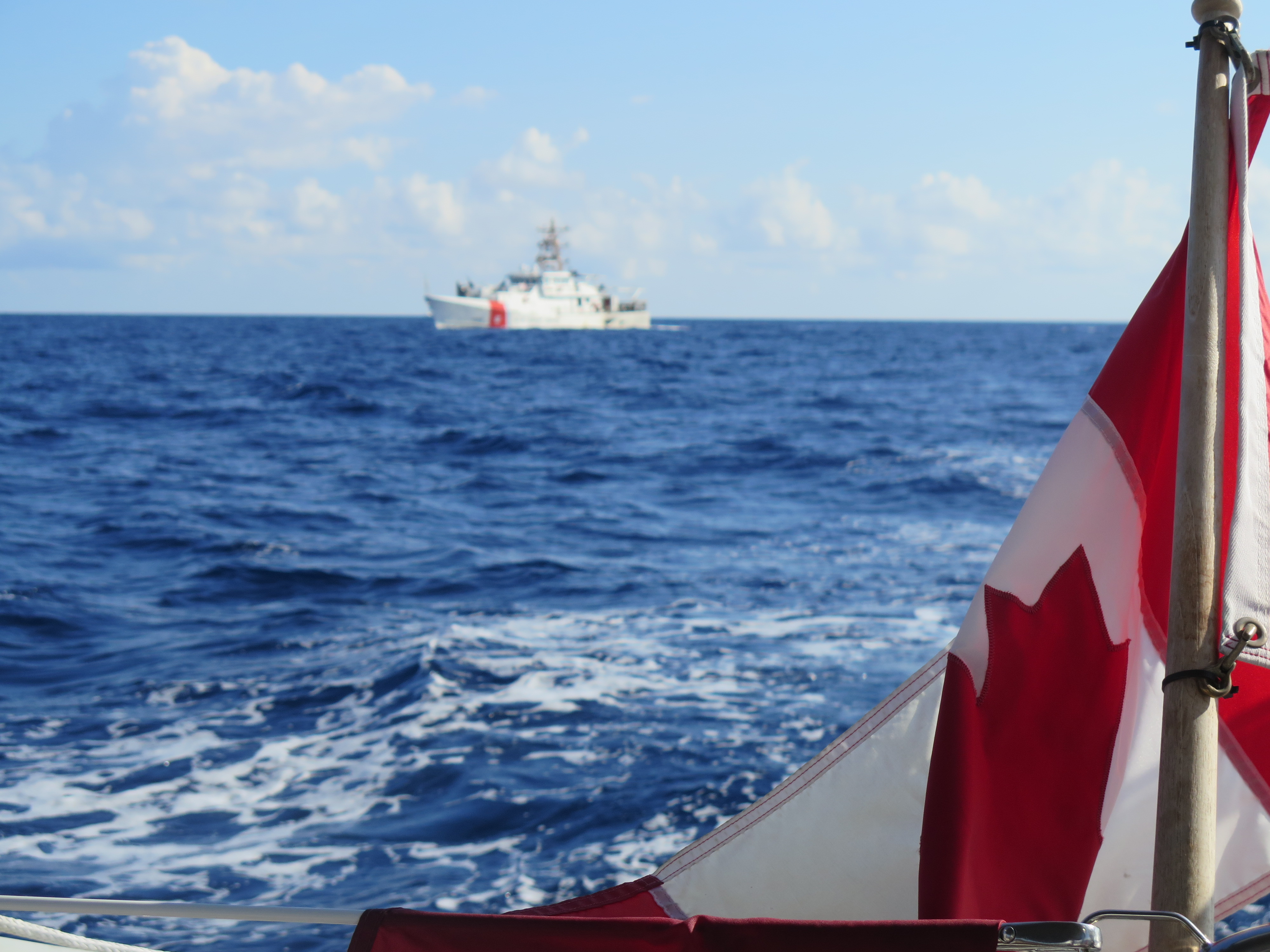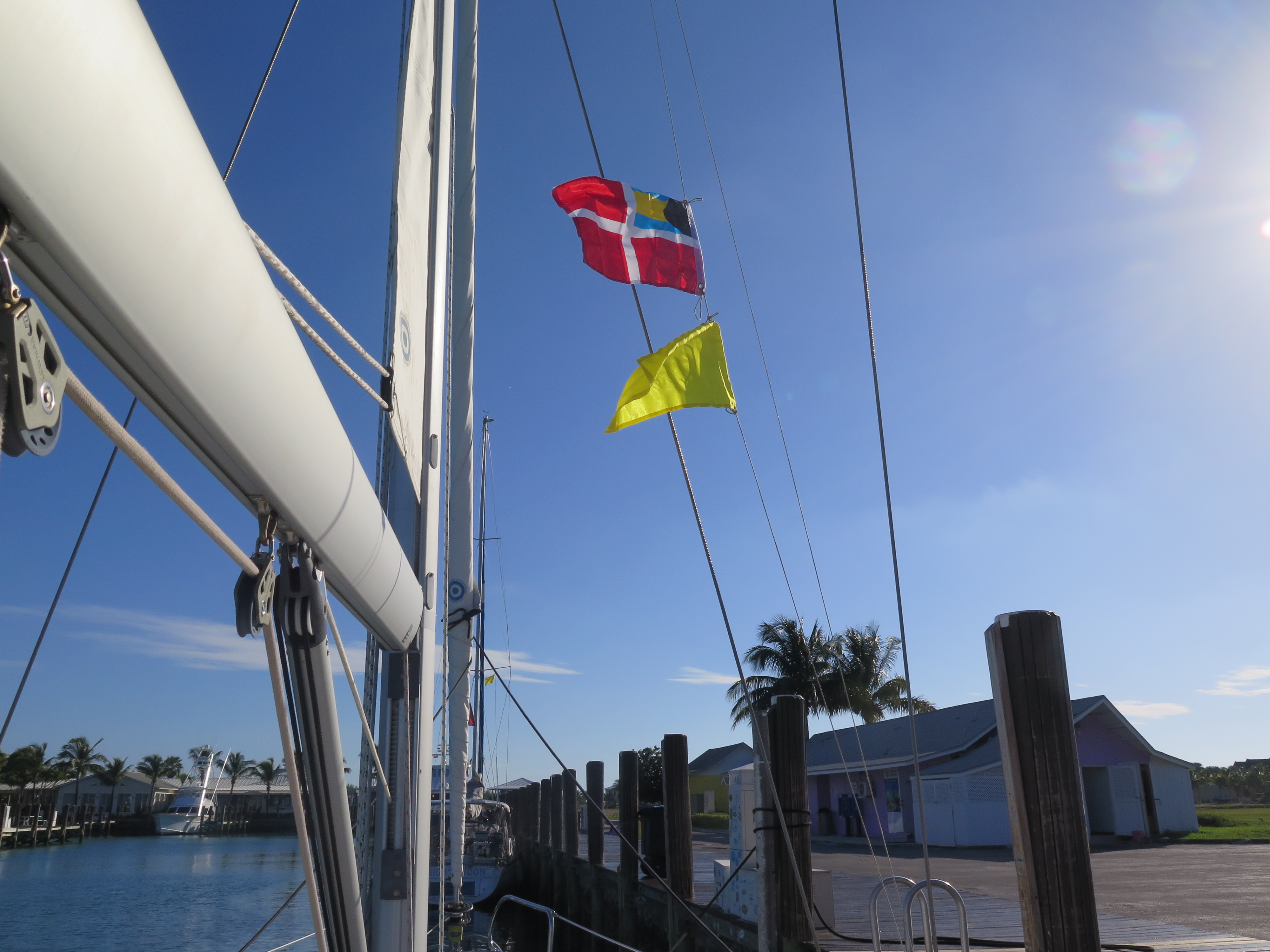 Bahamian courtesy flag and our yellow quarantine flag that we keep up until we clear customs.