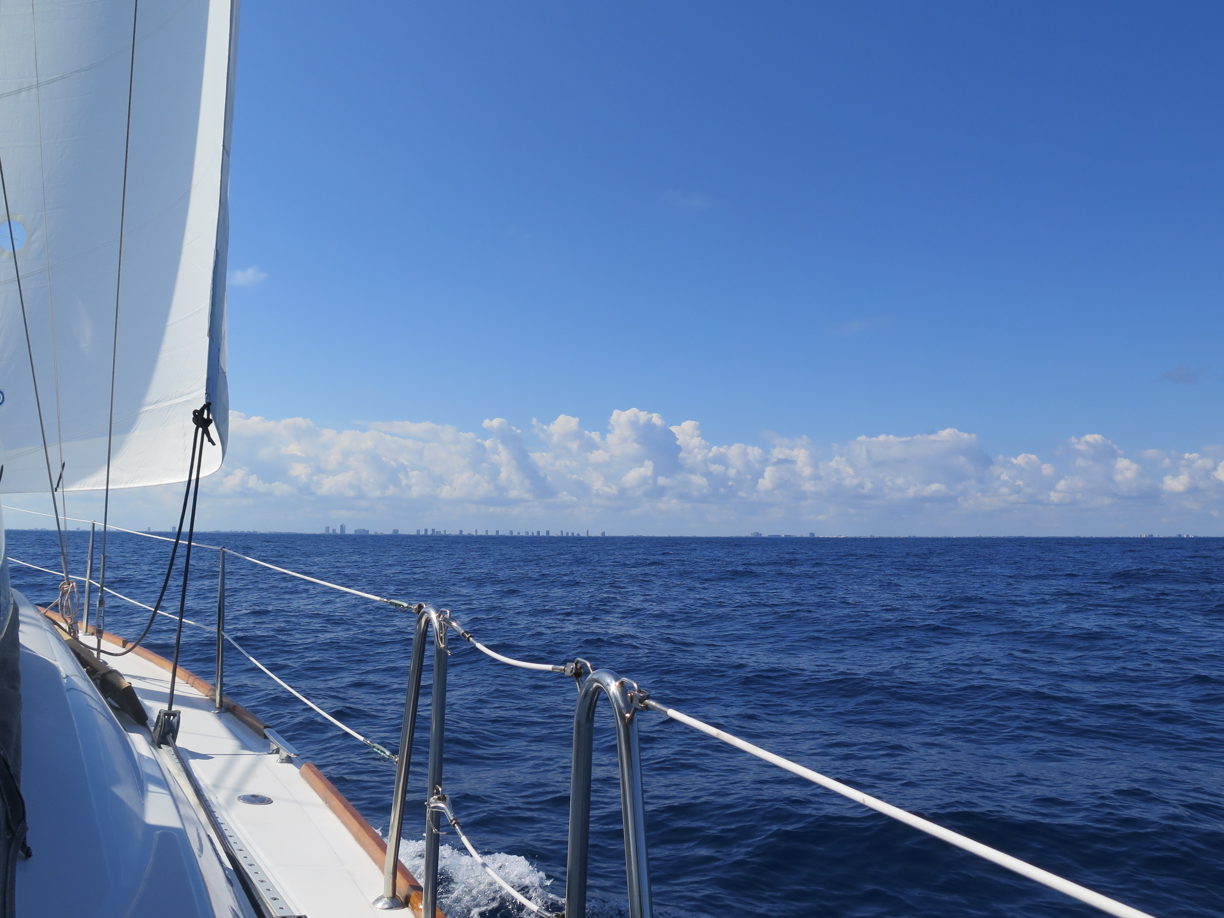 We wrap up all of the repairs and maintenance we’ve been doing on Silver Maple in Florida by the end of the week, and wake up on Saturday, November 7th at 4 AM, ready to head towards the Bahamas. Unfortunately, it is raining. Not a good sign, but thankfully it stops and the skies clear up quickly. As we are leaving the slip, Lee is on the dock untying the lines, when the wind catches the boat and it swings away from the dock and leaves without her. Ahh! Randy is able to swing the bow back so she can jump on. Not a good start to the day.